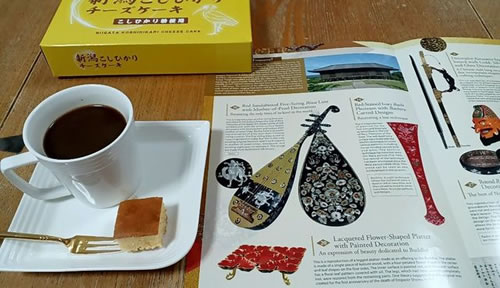 後日談。 天皇皇后両陛下が見に行ったとニュースになっていました。 次男がスキー合宿のお土産に買ってくれた新潟こしひかりチーズケーキをお供にパンフレットを見直す。