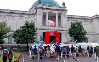 埴輪がバゲットに見えたりして、一瞬パン屋かΣ( ̄□ ̄;)みたいな(笑) 外に出たらば、HELLO KITTY50周年展もやっており、こっちはこっちで雨の中大混雑です。 興味はあるけど、この混雑に突入するまでの熱量はなく(^_^;)))こっちは素通り。 と思っていたら、ネット上でも「キティ王国できちゃってる」と評判になっております。 「ひと目なりと拝謁賜わろうと群れ集う庶民を悠然と睥睨するさま」だとか笑。確かに! もう一個興味があったのが東洋館。 弥勒菩薩たちがイケメンです。