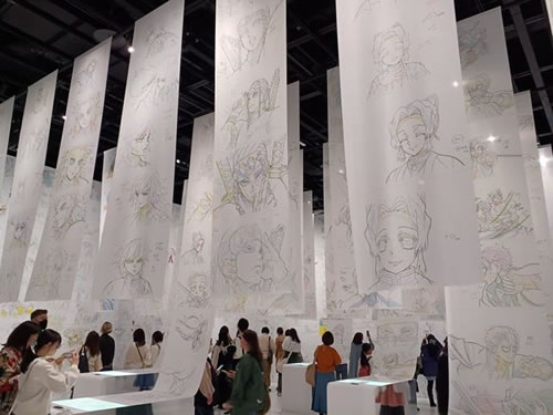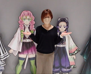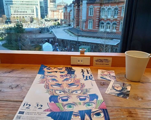 午前中食べるにはやや重し。 さて、私は知らなかったのですが、東京マラソンの日でした。 で、予約の時間に間に合うように出たらば、目的地を目の前にして、マラソンで封鎖。 スタッフに聞いて、京橋の地下鉄入口に入って地下を渡って無事到着。 柱展、長蛇の列に恐れをなしつつ、しのぶさんや炭治郎の衣装を着た子供たちもいて、めっちゃかわいい。 個性の間。 悲鳴嶋さんの戦いシーンを始めて見て感動!感激!! 言葉の間。 表情の間。