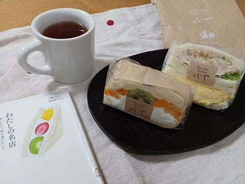 土浦のサンドイッチ屋さん「つじや」。 大人気のようで朝9時で、駐車場は満車、イートインスペースは満席。