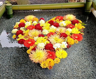 柏の布施弁天の花手水。 花を最後に持ってきてやな、 でも食いもんVS花が2対1で、 (配信:2025.5.8