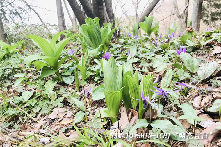 小梅蕙草や片栗が顔を出す