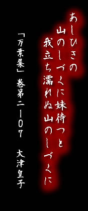 (意:あしひきの山の雫に、妹を待つとて私は立ち続けて濡れた事だ。)