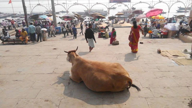 聖なる牛が見守っている
