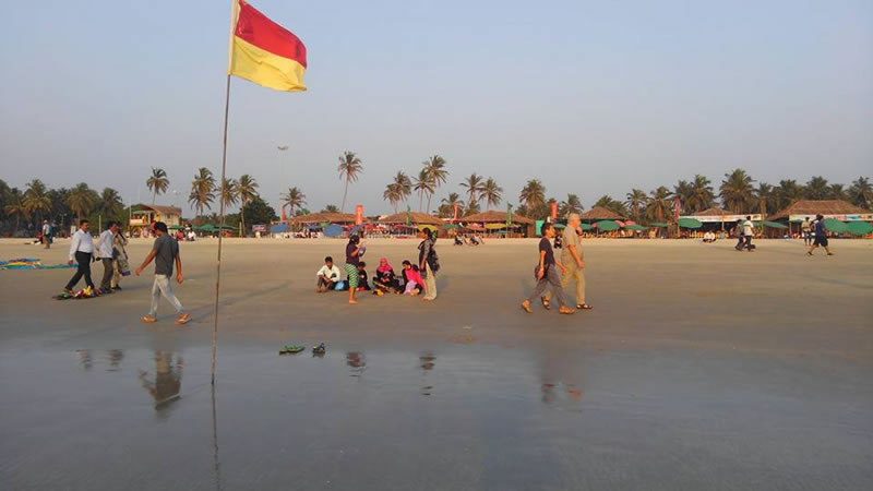 アレは遊泳禁止の旗 ・・と見れば そうでもないらしい 気持ちよく泳いでいたら 意味不明の英語で怒鳴られた ◇%*○∞…! (泳ぎの覚束ない爺ぃと見られたらしい…笑)