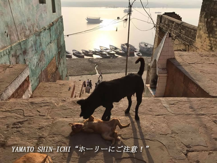 朝の風景はいつもと変わらず いつもの階段で いつもの犬たちがじゃれている