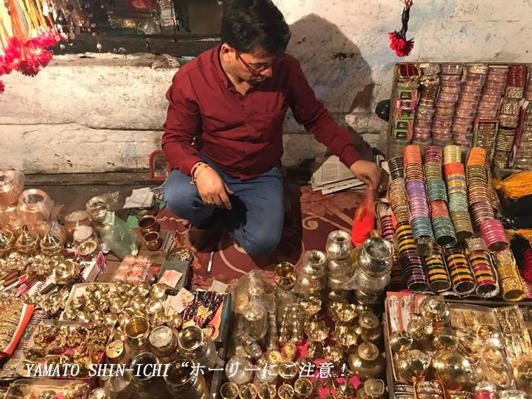 こちらは金ぴかの露天商