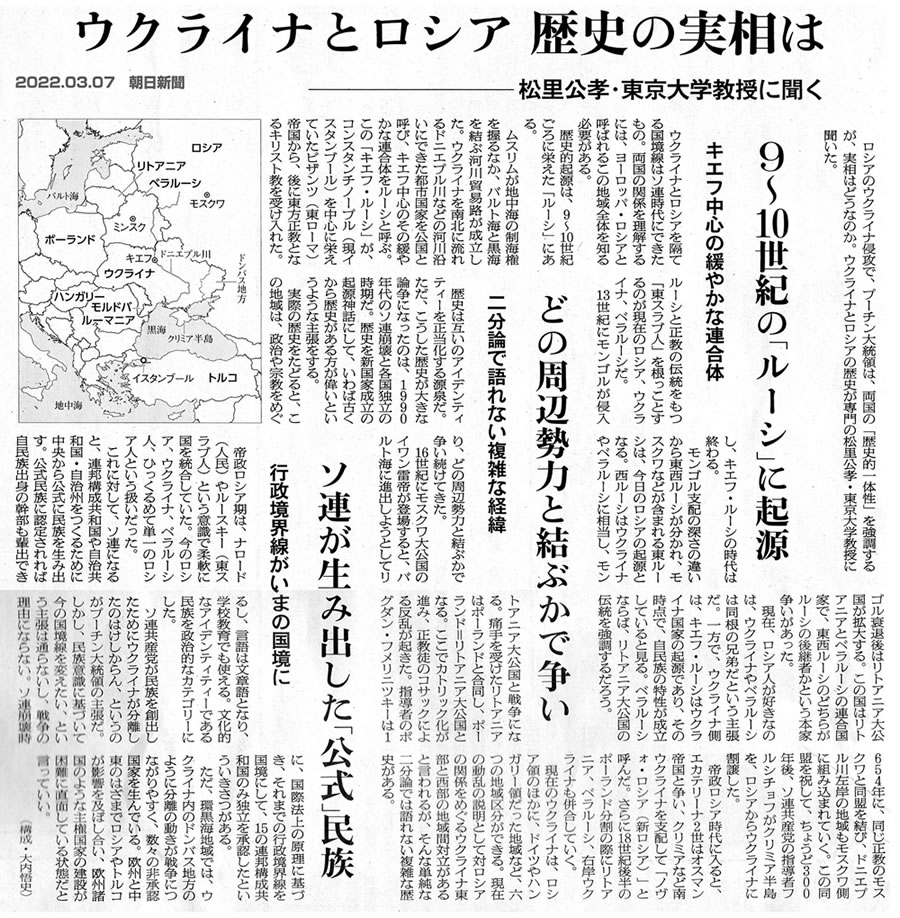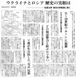 松里公孝東京大学教授 2022.3.7 朝日新聞