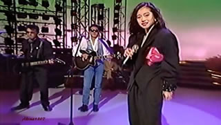フジ系「夜のヒットスタジオ」で、なんと二人の大物=作詞・作曲の陽水と安全地帯の玉置浩二をサブで侍らせて唄う姿は怒濤の迫力(画像2)。