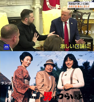 曰く、「トランプとゼレンスキーの喧嘩なんて見たくない。第一、戦争、人の命と取引(Deal)、レアアースを天秤にかけるなんて愚の骨頂。それにプーチンが「トランプがゼレンスキーを殴らなかったのは自制心の奇跡だ」と賞賛したっていったい何なのよ。こいつらグルよ。あ〜腹が立つ。それに比べりゃ、たとえフィクションでも寅さんの世界の方が断然平和だし、心が安まるわ」と。