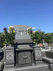 お彼岸。 雲ひとつない青空の下、自分の生前墓にお参り。