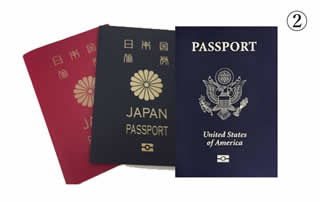私は日本国籍しかないが、パスポートは3種類持っている(写真②左から、通常の赤いパスポート、日本外務省に直接発行してもらった緑の公用旅券、そして米国国務省のワシントン・パスポートセンターで作ってもらった濃紺の旅券(ダミー))。