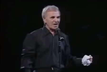 アズナヴールは、ステージでは必ずハンカチを使い、身振り手振りで情景を巧みに描写してみせ、曲のドラマ性にいっそうの厚みを持たせているという。いかにもフレンチ・テイストだ。