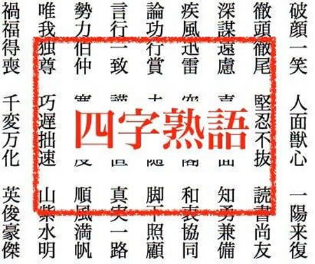 朝令暮改 二律背反 朝三暮四 巧言令色 小心翼翼 画龍点睛 四分五裂 自暴自棄 百家争鳴 馬耳東風 猪突猛進 空中楼閣 隔靴掻痒 戦戦恐恐 八方美人 茫然自失 絶体絶命 優柔不断 支離滅裂 内憂外患 曖昧模糊 不得要領 右顧左眄 厚顔無恥 依怙贔屓 独断専行 周章狼狽 軽佻浮薄 徒手空拳 頑迷固陋 傲岸不遜 前代未聞 右往左往 自画自賛 四苦八苦 笑止千万 疑心暗鬼 唯我独尊 切歯扼腕 驚天動地 冷汗三斗