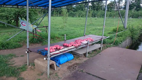 My favorite unattended sales place in Fukushima city. Only 2 dollars and 20 cents with 4 peaches.