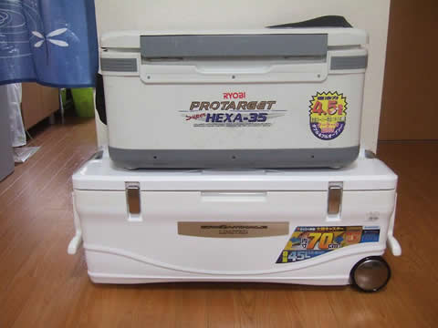 先週の73cmのヒラメが入らなかったので、クーラーボックスを新調しました。古いのはヤフオクに出品です。