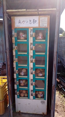 一番お気に入りの梨の自販機。なんと、梨7個で200円!