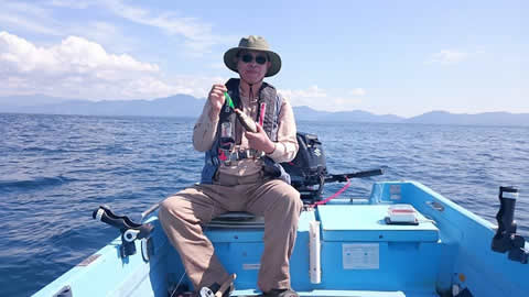 I went to Inawashiro Lake for lake trolling. I couldn't catch trout, caught other fish. But my buddy caught 3 trouts. Today, weather was fine, I fell so fine.