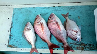 I was return from red sea bream fishing. The catch is 4. An interesting part of this fishing is that when the fish bite, the rod tip pierces the sea surface.