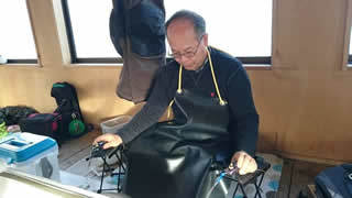 I also went smelt fishing on other boat. Today’s catch was 133, and I made rubber apron for ice fishing. It is good, I will not be bothered by the hook putting on clothes. And the smelt rice is so delicious!