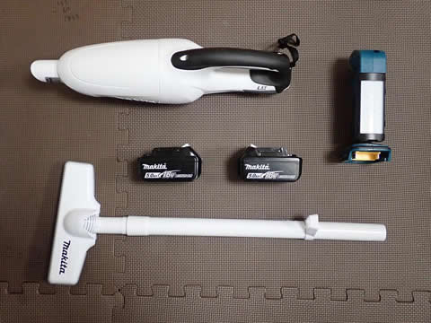 オフシーズンもったいないので、18Vバッテリーが使える掃除機とLED電灯購入しました。