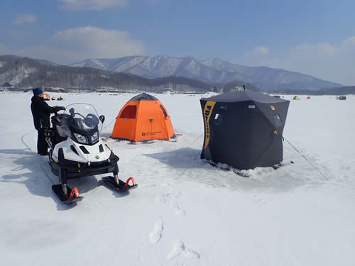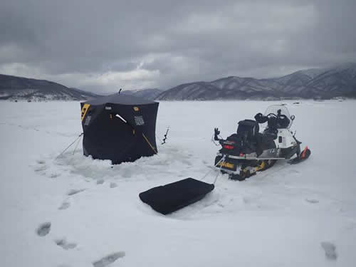 Today was also ice fishing and we ate Ramen riding snowmobile on the lake. Catch was 112.