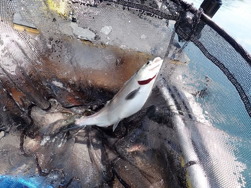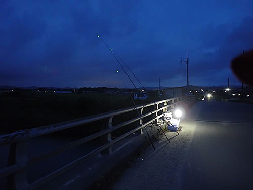 小さいのが1匹だけですが、夏の夜釣りはとても気持ちいいです。