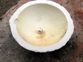 銀は良く溶けましたが、完全な丸玉になりませんでした。