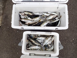 I went horse mackerel fishing in Japan sea last night. Catch was so good. In this fishing, using strong green light illuminate in the sea. So many fish is getting to gather under the boat.