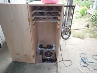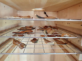 それから、冷蔵庫で1日乾燥させ、ヒッコリーを使って、90℃で1時間40分燻煙しました。