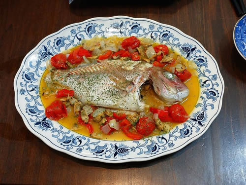 I went red seabream fishing in Japan sea. Catch was only 5 fish, but the aqua pazza was very tasty.