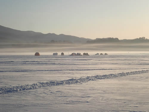 Ice smelt fishing day 3. I enjoyed the fantastic scenery in the morning. The fishing was okay. And driving 56mph on the lake.
