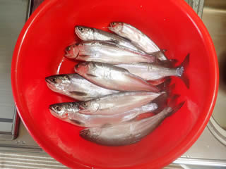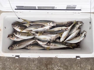 I went Horse mackerel fishing at night(from 6pm to 0am) . Catch was 45. In this fishing Using strong green light, collect fish.