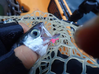 Today's kokanee fishing was so hard. They used no mouth. Only when I could successfully drop Sabiki rigs at 2 meters away did it bite a little.