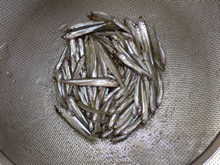 Smelt fishing in a dome boat. Catch was fair, but the fish were very small and averaged about 2 inches in length. Smelt rice was also delicious.