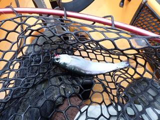 今日は群れがほとんど見当たらず、小さな2匹しか釣れませんでした。