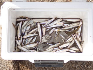 秋元湖カヤックでのわかさぎ釣り3回目、144匹と好調でした。