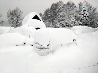凄い雪で、着いてから30センチは積もりました。2m近い雪があります。