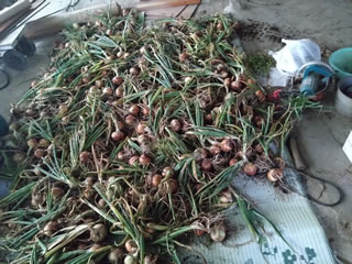 Harvested 500 onions. If I dry them for about 10 days and hang them out in the shade, they will be edible until winter.