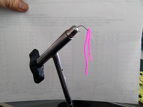 お土産のヒメマス釣りの仕掛けを作っています。