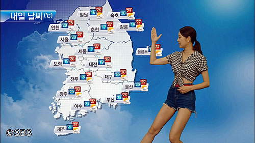 葉羽 韓国の天気予報は的中率が半分以下と言いますから、何もしない方がマシというもの。しかし、韓国のテレビのお天気お姉さんって、凄い格好で出てきますね~…予報内容よりソッチの方がウリなんでしょうか(笑)