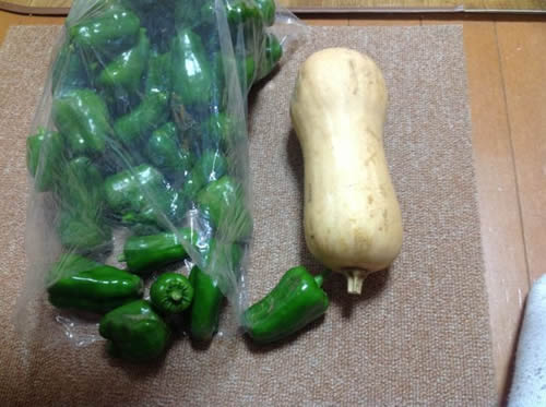 で・・・昨日大量の ピーマン カボチャ? キュウリ 等々