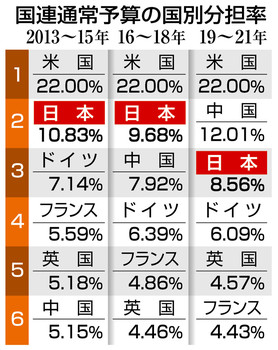 長年分担金の負担はアメリカに次いで2位でした。
