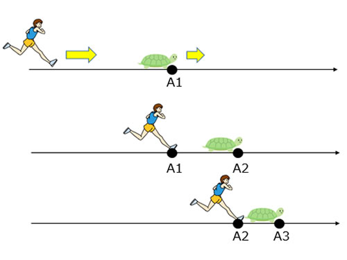 アキレスがどんなに速く走っても?ノロマなカメに追いつけない。