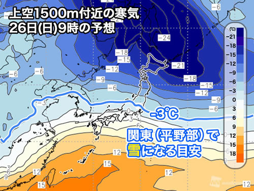 明日から関東地方の広い範囲で 雪 の予報が、
