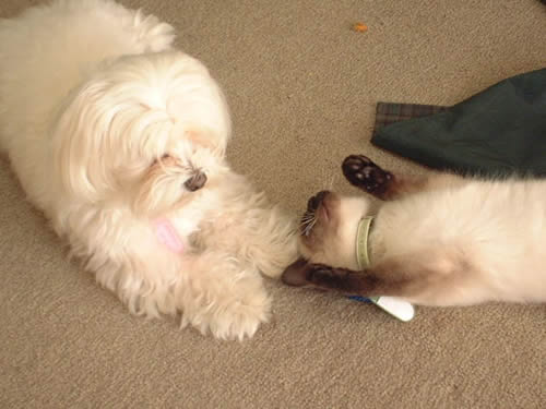 先住ワンコ(その時は保護?マルチーズ)とじゃれ合って