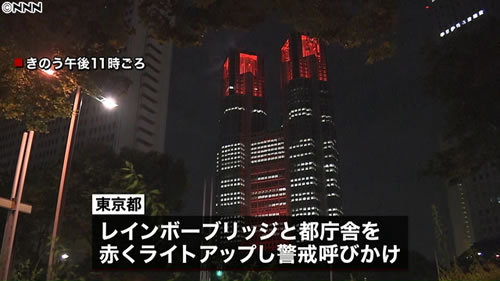レインボーブリッジ と 都庁 が 赤く ライトアップ?
