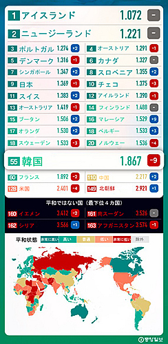 韓国が「世界で最も平和な国ランキング」で48位になった