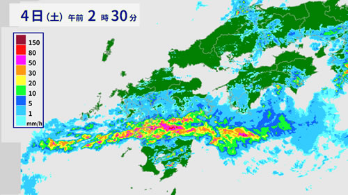 もしかするとまた恐怖の 線状降水帯 が現れるとも。