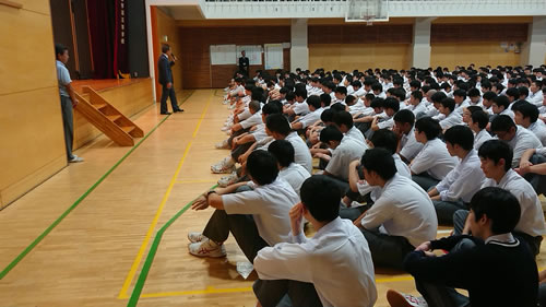 私立で大きな講堂があり、そこで全員が着席、